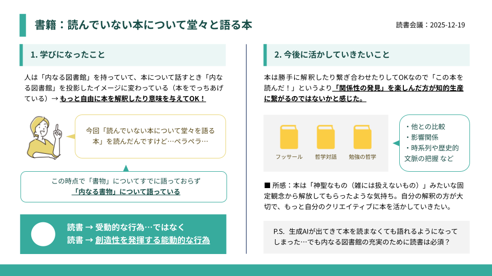 • そもそも「本」の内容について話すことなんてできない